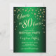 Invitation de fête du 80e anniversaire Design élégant avec fausse parties scintillant or et vert. Comprend des polices de caractères et des confettis stylisés. Salut à 80 ans !