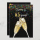 Toast de champagne sur noir avec confettis colorés en chute pour l'invitation de la fête de 85ème anniversaire.