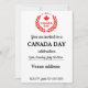 Invitation minimaliste pour la fête du Canada. La feuille d'érable rouge du Canada est accompagnée d'une couronne de laurier qui comprend le texte "Fête du Canada" et la date, le 1er juillet. Beaucoup d'espace pour ajouter vos propres détails de célébration. Facile à utiliser modèle !