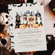 Une soirée costumée d'Halloween invitations modèles modernes. Prêt à ajouter vos propres informations personnalisées. Date, adresse, RSVP, numéro de téléphone ou courriel. Avec de grandes races de chiens ; Rottweiler, Pit bull, Labradoodle ou Goldendoodle, et un chien de montagne bernois, entouré de citrouilles mignons, d'une chauve-souris et de ballons gris. Idéal pour une fête d'Halloween adulte, des adolescents, des enfants, même pour une fête costumée d'Halloween chien rassemblement.