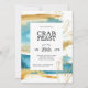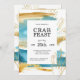 Qui n'aime pas la fête du crabe ? Organisez une fête mémorable, un pique-nique ou un dîner avec cette invitation inspirée de l'océan. Elle présente des aquarelles abstraites peintes comme l'océan et le sable, aux accents de corail doré. L'arrière de l'invitation reprend le même design en sens inverse avec un crabe bleu au centre du design. Personnalisez le modèle de texte avec vos détails.