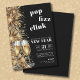 Invitation Fête du Nouvel An Black Gold Champagne Pop