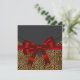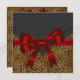 Belle invitation de fête léopard noir et rouge avec ruban rouge. Cette invitation de fête élégante léopard rouge est facilement personnalisable en ajoutant vos détails d'événement, style de police, taille de police et couleur, et libellé.