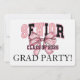 La conception de l'invitation comporte le mot "SENIOR" en gros caractères gras en haut, rempli d'un motif empreinte de léopard rose vif. Sous "SENIOR", un grand arc rose ajoute une touche d'élégance et de festivité. Sous l'arc, le texte "CLASS OF 2025" est écrit dans une police en gras et bloquant, mettant l'accent sur l'année de graduation. Au bas de l'image, "GRAD PARTY !" est affiché en grand format, dans une ambiance festive et festive, parfaite pour annoncer l'événement de remise des diplômes.