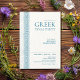Invitation élégante de fête en Toga inspirée de la Grèce antique en bleu avec des éléments en pierre. Parfait pour votre événement sur le thème de la Grèce antique ou de la Rome antique !