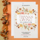 Invitation vos invités à une fête de Thanksgiving chaleureuse et festive avec cette élégante invitation avec un design floral magnifique. Les tons doux et terreux des fleurs et du feuillage encadrent un message Thanksgiving classique, donnant le ton parfait pour votre réunion de vacances. Idéal pour un dîner en famille ou entre amis, cette invitation reflète l'esprit de gratitude et de convivialité.