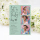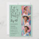 Célébrez le grand 4-0 en style avec cette invitation moderne et élégante de fête du 40e anniversaire! Pastel sauge vert Avec un design épuré et épuré, cette invitation présente l'expression ludique "Let's Party!" dans une police de caractères stylisée, suivie par "Big 40!" en caractères gras. Le côté gauche de la carte fournit tous les détails essentiels de la partie dans une police serif sophistiquée. Le côté droit de l'invitation met en évidence une série de trois emplacements photo, parfait pour présenter les photos préférées de l'invité d'honneur. La combinaison de la typographie contemporaine et d'une disposition minimaliste assure un look chic et poli. Entièrement personnalisable, cette invitation vous permet d'ajuster les couleurs et les photos en fonction du thème de la fête et du style personnel.