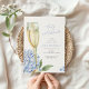 Ce beau design présente des fleurs d'hortensia bleu, un verre de champagne doré et votre texte personnalisé. Utilisez le formulaire de modèle pour ajouter vos informations.