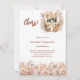 Une invitation moderne, élégante et glamour pour une fête d'anniversaire. Arrière - plan blanc, décoré d'un panier avec flûtes, flacons de vin mousseux et fleurs beiges crème. Personnalisez et ajoutez les détails de votre fête.