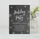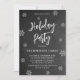 Rustique Chalkboard Snowflakes Script Black Holiday Party Invitations est parfait pour un événement d'hiver rustique. Dispose d'un texte "Fête" dans un joli script de brosse à lettres main en blanc sur arrière - plan de tableau noir. Facile à personnaliser avec votre nom et les détails de la fête.
