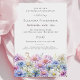 D'élégants maîtres aquarelles créent une bordure florale au bas de cette invitation surprise de fête d'anniversaire. Les fleurs mauves, roses, bleues et blanches pastel sont la fleur du mois de naissance de septembre, ce qui en fait le thème idéal pour votre anniversaire de septembre.