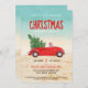 Cette fête festive de Noël en Floride style amusant présente notre version tropicale du pick-up rouge vintage vu dans ces parties neigeux cette saison des fêtes. Il est muni d'une convertible vintage rouge — haut en bas, bien sûr ! — avec un sapin de Noël arrimé sur le siège arrière en rentrant à la maison pour une fête de Noël très chaude et tropicale. La typographie est amusante, festive, fantaisiste et personnalisable, de haut en bas. Le décor est installé sur une scène tropicale d'océan aquatique et de plage de sable. L'envers présente la même image arrière - plan, une minuscule copie de la convertible rouge et de l'arbre, plus votre nom de famille encore et l'année. Faites-en une fête de Noël tropicale, à la Floride !