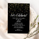 Cette invitation de fête du Nouvel An avec des confettis dorés sur fond noir est parfaite pour une célébration élégante de la Saint-Sylvestre. Le design présente des confettis dorés tendance avec une calligraphie blanche élégante sur un fond noir.