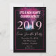 Personnalisez cette charmante invitation à la fête du Nouvel An 2019. Sur un fond noir, cet article affiche un arrière-plan de feu d'artifice rose avec tout votre texte écrit en police rose clair. Vos informations de fête. Commandez un ensemble dès aujourd'hui !
