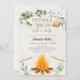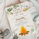 Cette adorable invitation présente nos peintures de mores dessinées à la main et des illustrations de feux de camp aux accents de verdure aquarelle.