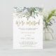 Ces élégantes invitations de brunch après mariage, minimalistes, présentent une verdure à l'aquarelle tendance et des feuilles botaniques sur un fond blanc épuré avec un script manuscrit moderne en faux or qui dit "nous sommes mariés".