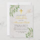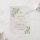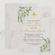 Il y a des branches de saule avec des feuilles dans les coins, en haut à gauche et en bas à droite. Il y a une grande croix dorée au-dessus du texte (c'est une feuille d'or faux). Les mots "Première communion" et le nom sont dorés ; le nom est écrit dans une écriture calligraphique.