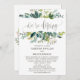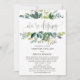 Cette carte de réception de fuite "feuillage nous fuyons" est parfaite pour une fête post-fuite rustique. Le design présente un cadre bohème de feuilles vertes et de botaniques feuillues. Les cartes de réponse assorties sont vendues séparément.