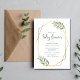 Des amis Invitations et la famille pour célébrer la maman-to-be avec cette frontière dorée d'inspiration bohème et invitation au baby shower feuillage vert. Customisez avec les détails de votre fête. L'invitation revient à la coordination verte.
