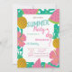 Ces invitations mettent en vedette des feuilles de palmiers aux fruits tropicaux et des flamants roses sur un arrière - plan bleu. Cette invitation est facilement customisée pour votre événement en ajoutant simplement vos détails.