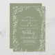Cette carte de faire-part de mariage verte à sauge de feuille minimale est parfaite pour un mariage de saumons boho. Le design se compose d'une simple silhouette de feuilles verdoyantes dans une couleur verte poussiéreuse avec un style minimaliste de boho de montagne.
