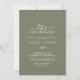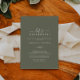 Cette feuille minimale vert foncé fêtons l'invitation est parfaite pour une fête de fiançailles de boho, mariage après la fête, la retraite, la remise des diplômes ou tout événement heureux. Le design se compose d'une simple silhouette de feuille de verdure en vert d'olivier, au style bohème minimaliste de montagne.