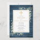Invitation Feuille rustique bleue Croix dorée Baptême