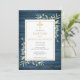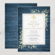 Avec un feuillage délicat de peinture à l'aquarelle sur un fond en bois rustique bleu, et un crucifix doré élégant, cette invitation de baptême ou de christening chic peut être personnalisée avec vos informations spéciales. Conçu par Thisisnotme©