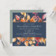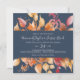Cet automne laisse la marine bleu décontracté carré faire-part de mariage est parfait pour un mariage d'octobre. Le design rustique moderne présente de superbes feuilles d'automne aquarelle peintes à la main dans des tons colorés de jaune, d'orange brûlé et de rouge bordeaux qui s'affichent sur un arrière - plan bleu marine.