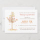 Invitation votre dîner Thanksgiving virtuel invités en style avec cette invitation moderne aquarelle. Sur la gauche, un arbre d'automne peint de feuilles de rouge, d'or et d'orange brûlé. A droite, les détails de votre célébration de Thanksgiving pour vous permettre de personnaliser une typographie moderne. L'arrière de la carte a un gros plan des arbres de chute d'aquarelle. Conçu par des artistes ©Tim Coffey et Susan Coffey.