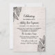 Invitation au déjeuner commémoratif avec les contours de feuilles en noir et blanc, contre une texture imprimée de bouleau. Ajoutez le nom et les années de vie de votre être aimé, et le texte d'invitation fontes noires, un moderne et une calligraphie.