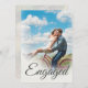 Une simple photographie avec un script moderne et élégant annonçant votre Fiançailles au-dessus du haut. La photo est facilement changée en votre propre photo personnelle. La photo au verso apparaîtra comme dans l'exemple. Le texte à l'envers est facilement changé pour vous-même.