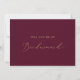 Cette délicate carte de proposition de femme de chambre en or et en bordeaux est parfaite pour un mariage moderne. Le design minimaliste romantique présente une belle et élégante typographie de champagne jaune doré sur un arrière - plan rouge bordeaux à l'allure simple et épurée. Customisez la carte avec le nom de la mariée et de la demoiselle d'honneur. Personnalisez le dos de la carte avec un message personnalisé.