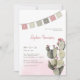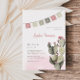 Célébrez la future mariée avec cette invitation à la douche nuptiale sur le thème de la fête moderne, avec un cactus fleuri aux fleurs roses poussiéreuses et une guirlande en papier.