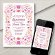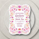 Mariachi, margaritas et souvenirs ! Lancez la fête avec ce design de fêtes folkloriques mexicaines. Le texte coloré et l'oeuvre d'art (dessinée à la main par Lively Scribe) donnent à ce design une ambiance fantaisiste mais élégante. Parfait pour les latins de votre vie. Ou une fête qui se trouve juste à côté du Cinco de Mayo ou de Dia de los Muertos. Commandez vos invitations imprimées et les fournitures de fête ou téléchargez vos invitations numériques dès maintenant pour une journée qu'ils n'oublieront jamais !