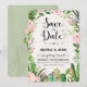 Invitation rustique de fiesta save the date avec des succulentes aquarelles, des roses roses et des lettrages calligraphiques modernes.