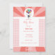Invitation de baby shower joyeuse avec des couleurs blanches et roses. Surmontée d'un bébé volant porté par des ballons. Un beau souvenir de l'occasion la plus merveilleuse