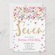 Invitation Fille 7e Anniversaire Coeurs Confetti Rainbow Part