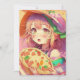 Anime girl tenant une pizza pepperoni joli pastel invitation de fête d'anniversaire de petite fille.