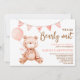 Ours Baby shower invitation pour bébé fille, We Can Bearly Wait, ours avec ballon