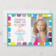 Kawaii, mignonne invitation de fête d'anniversaire Purrfect colorée pour les enfants, avec photo personnalisée de la fille et drôle de motif de chat.
