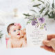 Invitation Fille de photo florale de rose violette Baptême