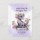 Les filles peuvent aussi être des dragons ! Le plus mignon petit dragon violet aux yeux écarquillés invitant des amis à une fête d'anniversaire, et habillé en tenue de dragon (si possible). Nuages violets en haut et en bas de cette invitation avec du texte alternant entre les couleurs verte et violette.