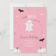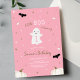 Cherchez-vous une invitation d'anniversaire sur le thème de l'Halloween qui est juste? Ne cherchez plus . Cette charmante invitation met en avant un mignon fantôme avec des étoiles d'aquarelle et des citrouilles fantaisistes sur fond de rose pastel. Utilisez les outils de conception pour personnaliser le texte et l'âge.