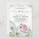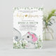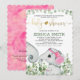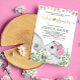 Invitation Fille Fleur Éléphant Baptême Aquarelle