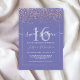 Un confetti en feuille d'or rose girly, élégant et chic et bordure géométrique Sweet 16 anniversaire invitation, sur une couleur perwinkle violet modifiable de l'année arrière - plan et une police de script moderne élégant, il est parfait pour élégante fête de fille., ajoutez votre photo à l'arrière