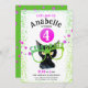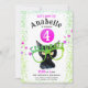 Invitation Fille Rose Vert Chat Noir Paw Parties scintillant