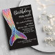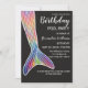 Cette invitation à la fête d'anniversaire, fille et mignonne, est le choix idéal pour une fête de billard amusante et excitante pour la fille d'anniversaire et ses amis. Le design présente un joli et majestueux arc-en-ciel dessiné à la main couleurs de la queue de sirène illustrée sur l'arrière - plan noir supérieur. La queue est peinte à la main rose, bleu marine, couleur violet écailles de sirène d'aquarelle avec tracé en blanc. Ce design artistique, branché et adorable fera sourire votre fille et ses invités.La couleur arrière - plan et textuelle est réglée mais peut être changée en cliquant sur le bouton "personnaliser".