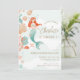 Invitation Fille Sirène Bash fête d'anniversaire Corail vert