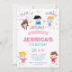 Célébrez votre prochaine fête d'anniversaire de petite fille avec cette invitation impressionnante de fête d'anniversaire de gymnastique. Comporter de petits gymnastes mignons renversant, rebondissant, dégringolant et sautant. Personnalisez cette grande invitation avec vos détails de partie facilement et pressez rapidement, simplement la personnaliser il bouton plus loin pour réarranger et composer le style et le placement du texte. (c) Le studio heureux de chat.
